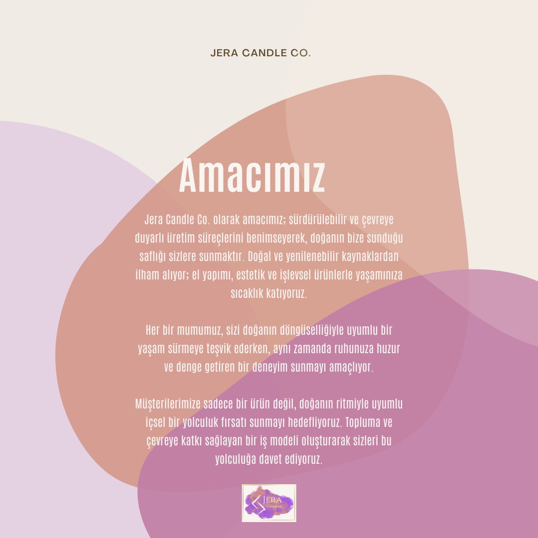 Jera Candle Co. olarak hayalimiz; evinizin her köşesine doğanın sadeliğini ve huzurunu taşıyarak, sizi iyi hissettiren mumlar sunmaktır.